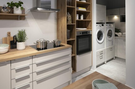 Gerade auch wenn Sie alleine leben, zahlt sich das aus, weil Sie weniger Geschirr (und Stauraum) benötigen und im Ofen kleinere Portionen zubereitet werden: Die kleine Geschirrspülmaschine ist schneller voll, der kleine Backofen benötigt weniger Strom.